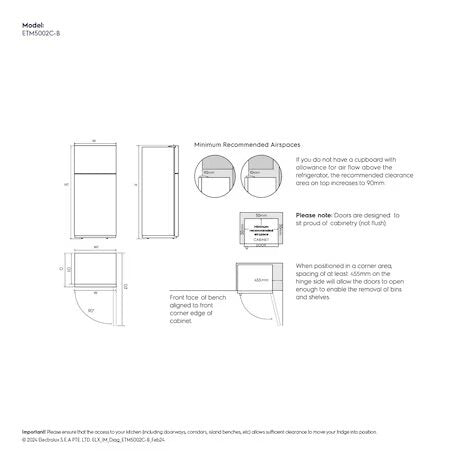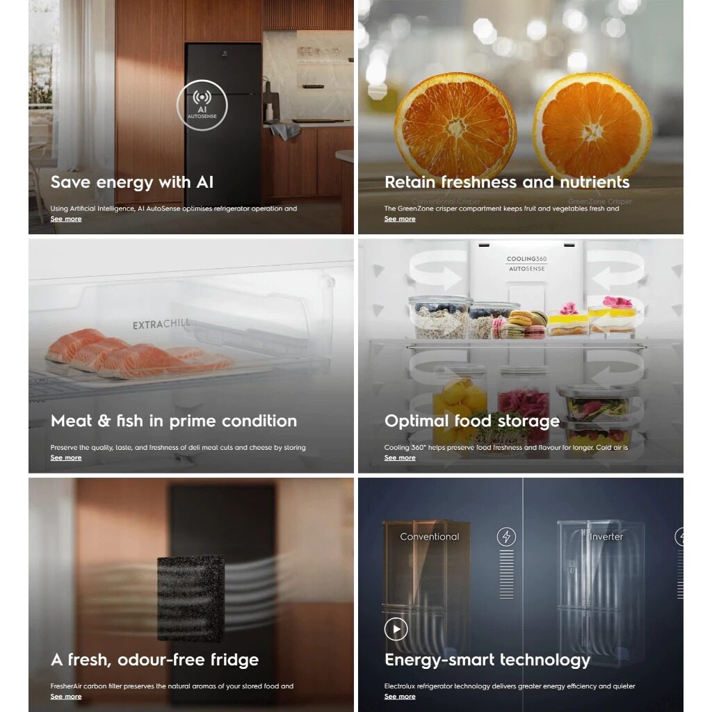Electrolux ETM5002C-B 503L 2-Door Fridge, 700 Series AI AutoSense, Top Freezer Refrigerator Inverter ETM5002CB