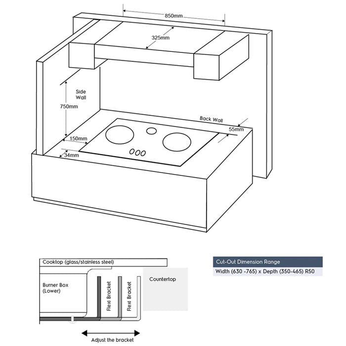 No. of cooking zones: 2 Wok burner Flexi cut out One hand ignition FlameShield trivet Cast iron pan supports StepFlame...