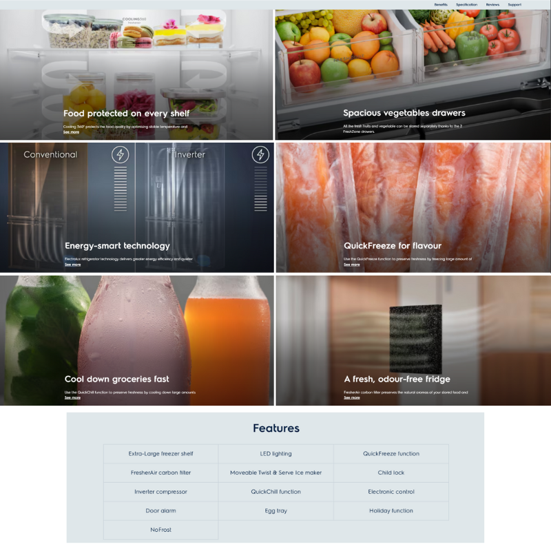 Extra-Large freezer shelf LED lighting QuickFreeze function FresherAir carbon filter Moveable Twist & Serve Ice maker Child lock Inverter compressor... Read more