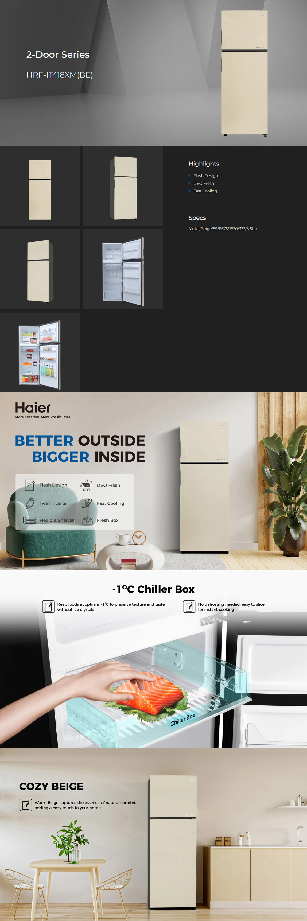 Haier HRF‑IT418XM(BE) 418 L 2‑Door Twin Inverter Refrigerator – Metal Beige