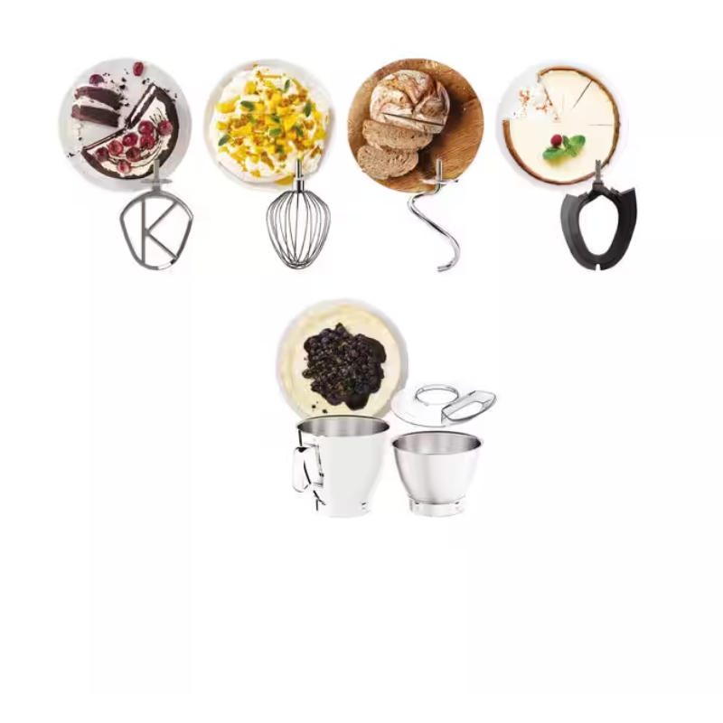 1000W 4.6L stainless steel bowl 3 Power Attachment outlets ( Slow, Fast, Bowl) 3 Bowl tools; K-Beater, Whisk, Dough Hook...