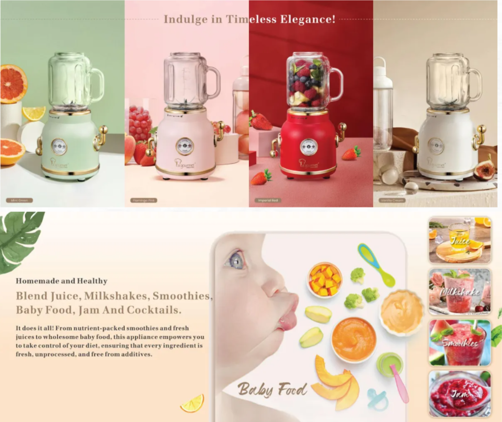High Power 300W 6 Blades (SUS304 Stainless Steel) Overheating Protection BPA Free Bottle & Mug Retro Design La gourmet 0.6L...