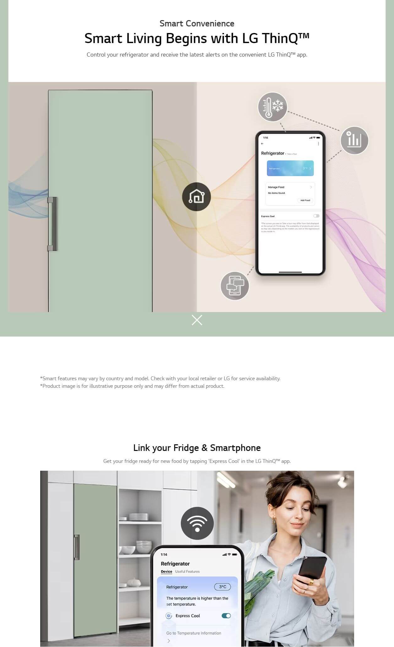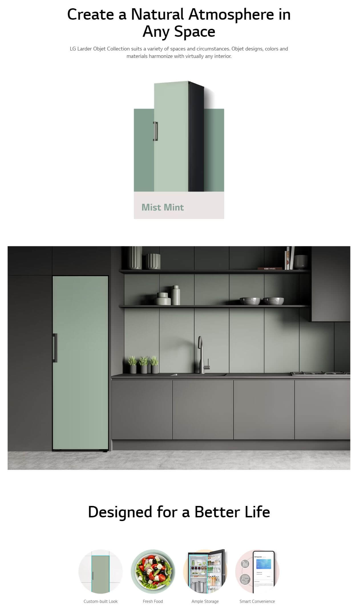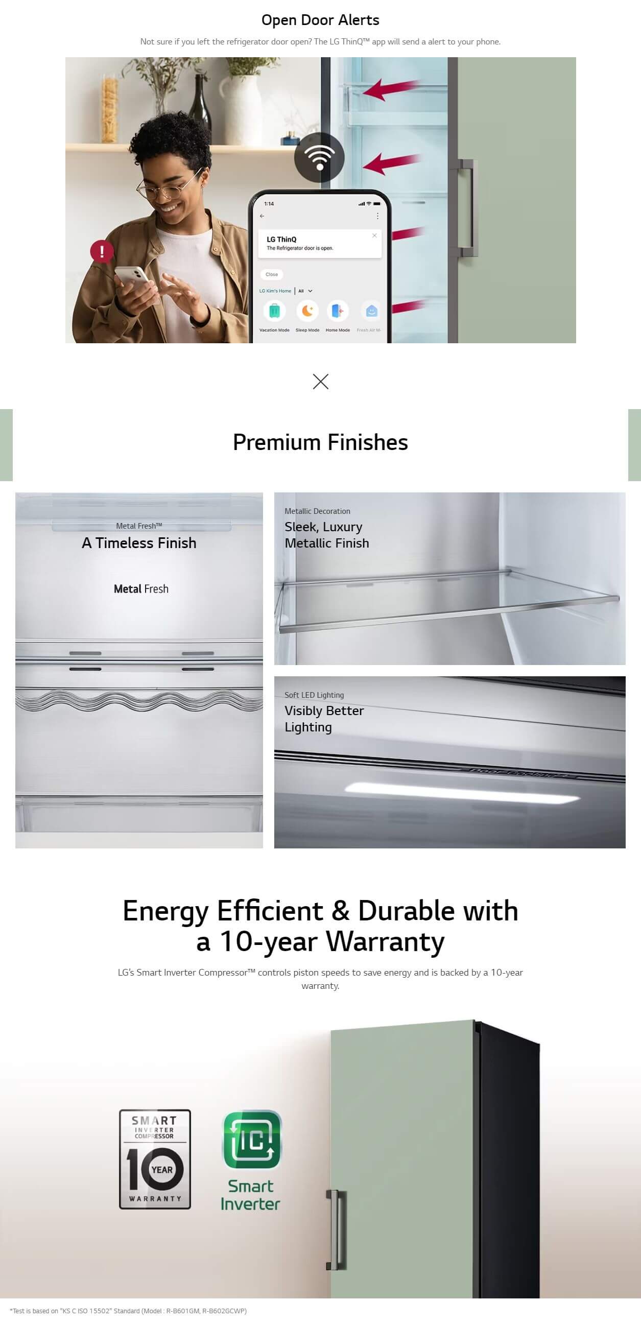 LG GC-B411FGPF 386L 1-Door Fridge, Objet Series, Smart Inverter Refrigerator, Mint GCB411FGPF