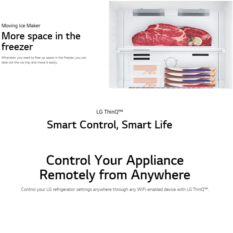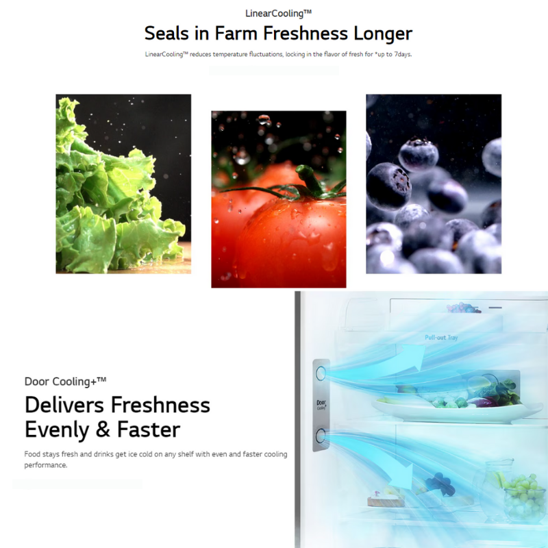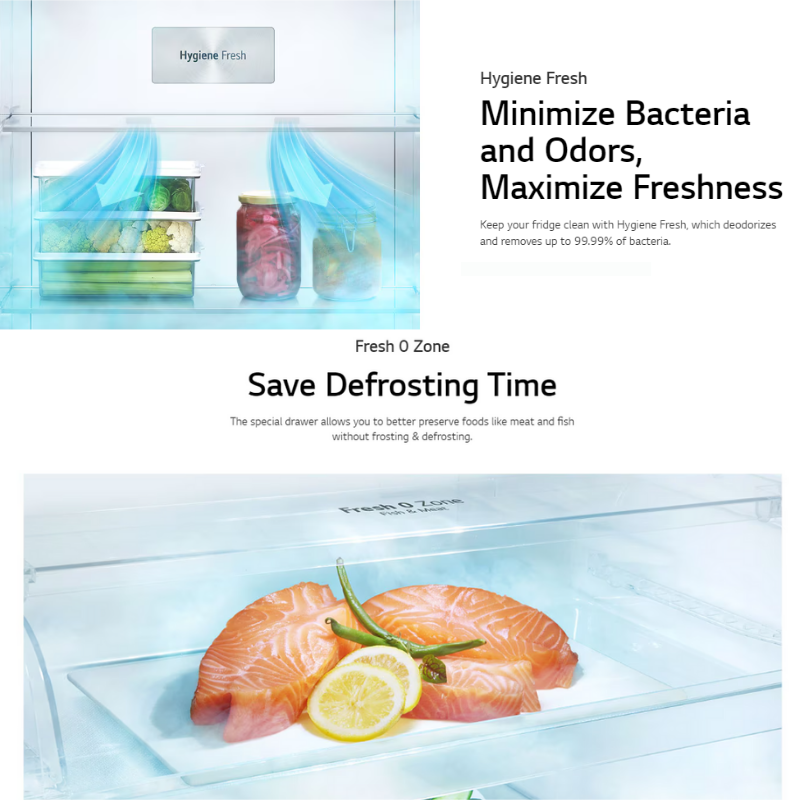 LinearCooling™ Door Cooling+™ Hygiene Fresh Fresh 0 Zone LG ThinQ™ Smart Inverter Compressor™ Read more