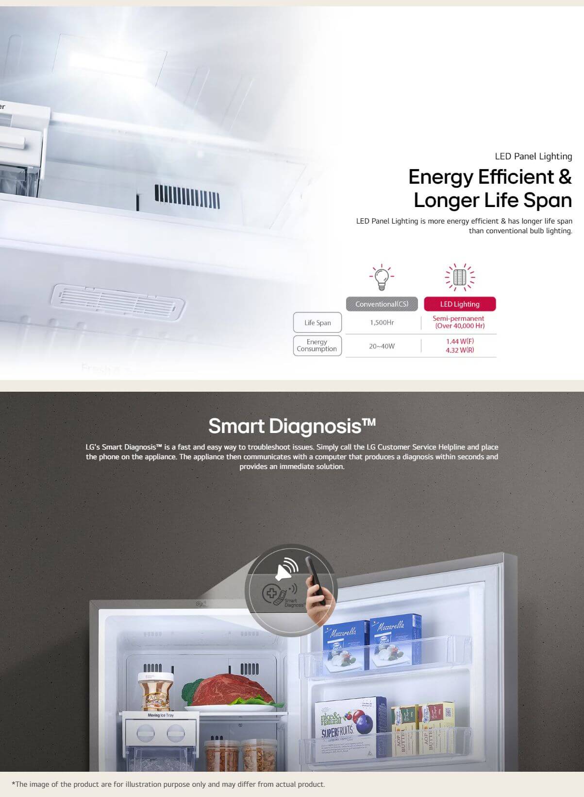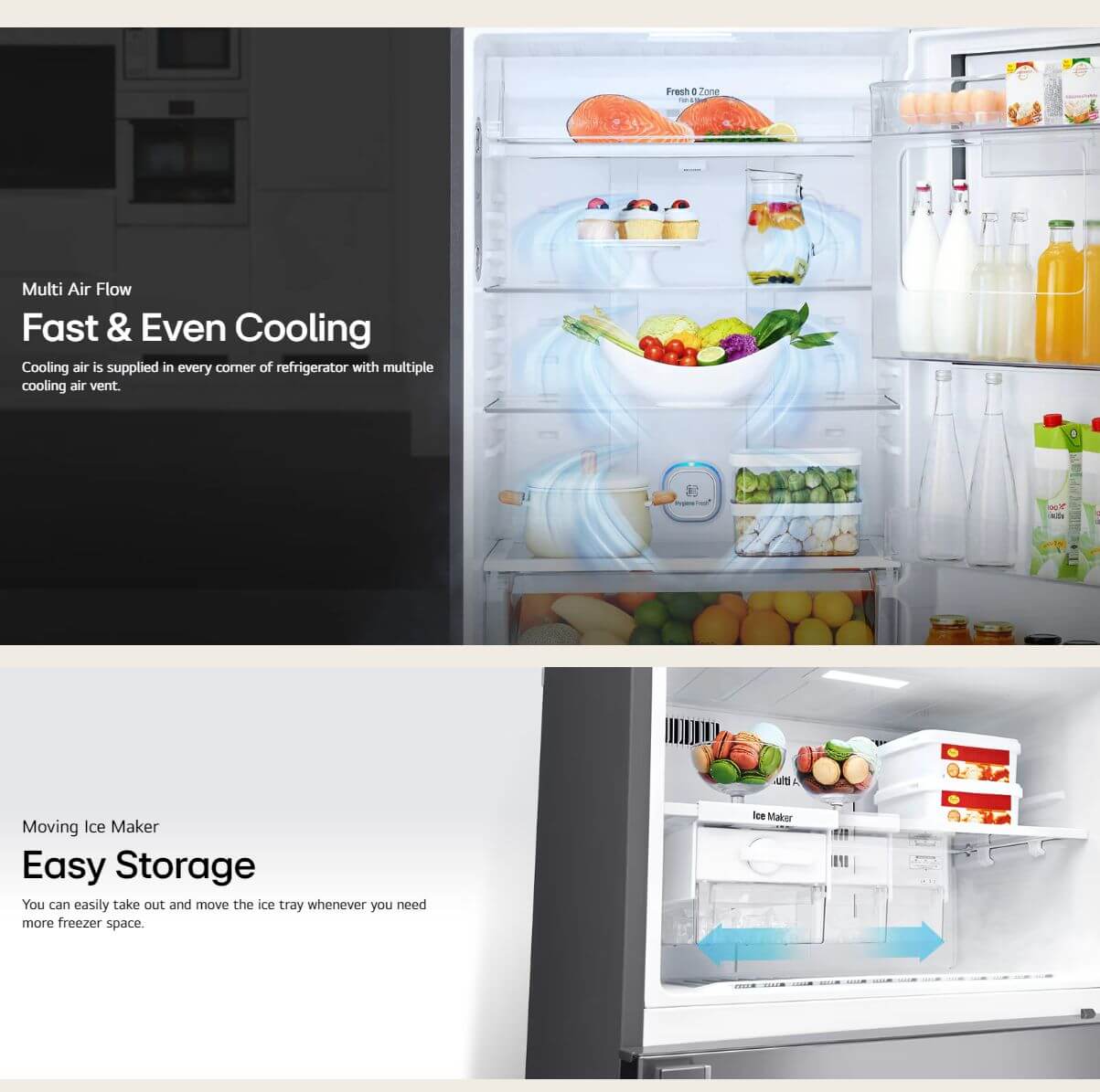 LG GN-C702HQCM 547L 2-Door Fridge, Top Freezer Refrigerator, Smart Inverter, Beige GNC702HQCM