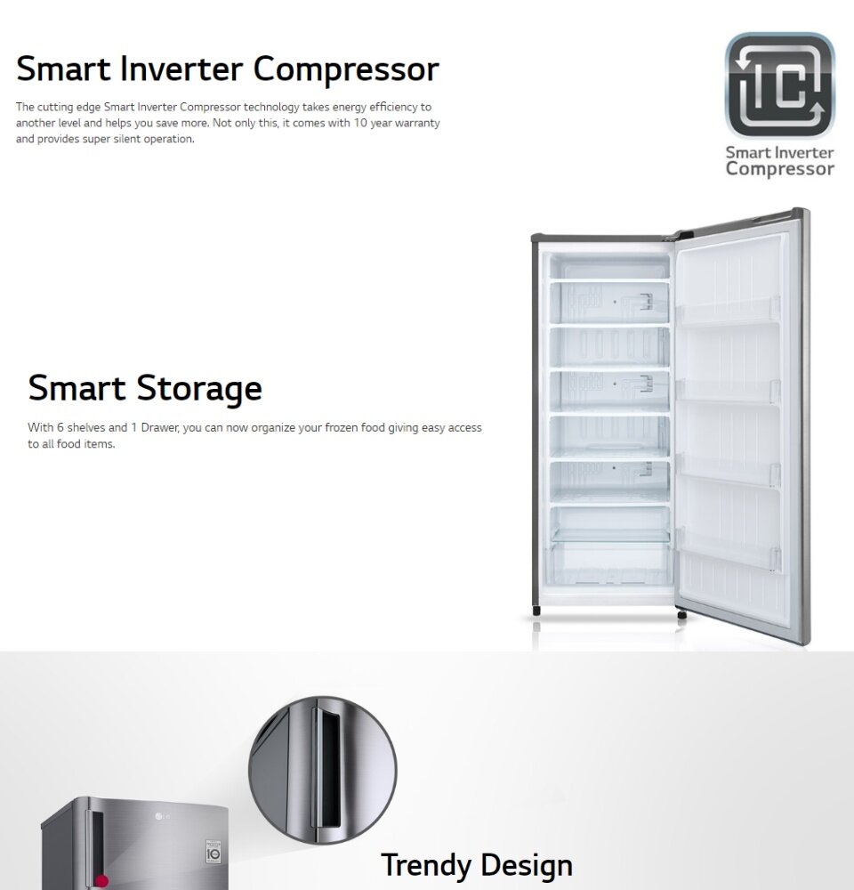 LG GN-304SLBT 171L Upright Freezer, Smart Inverter Compressor, Silver GN304SLBT