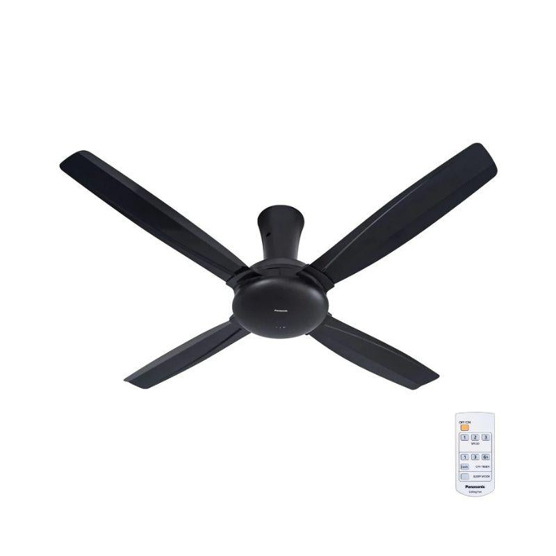 Panasonic F‑M14CZVBKH 56″ Bayu 4-Blade Ceiling Fan, Remote Control (Black)
