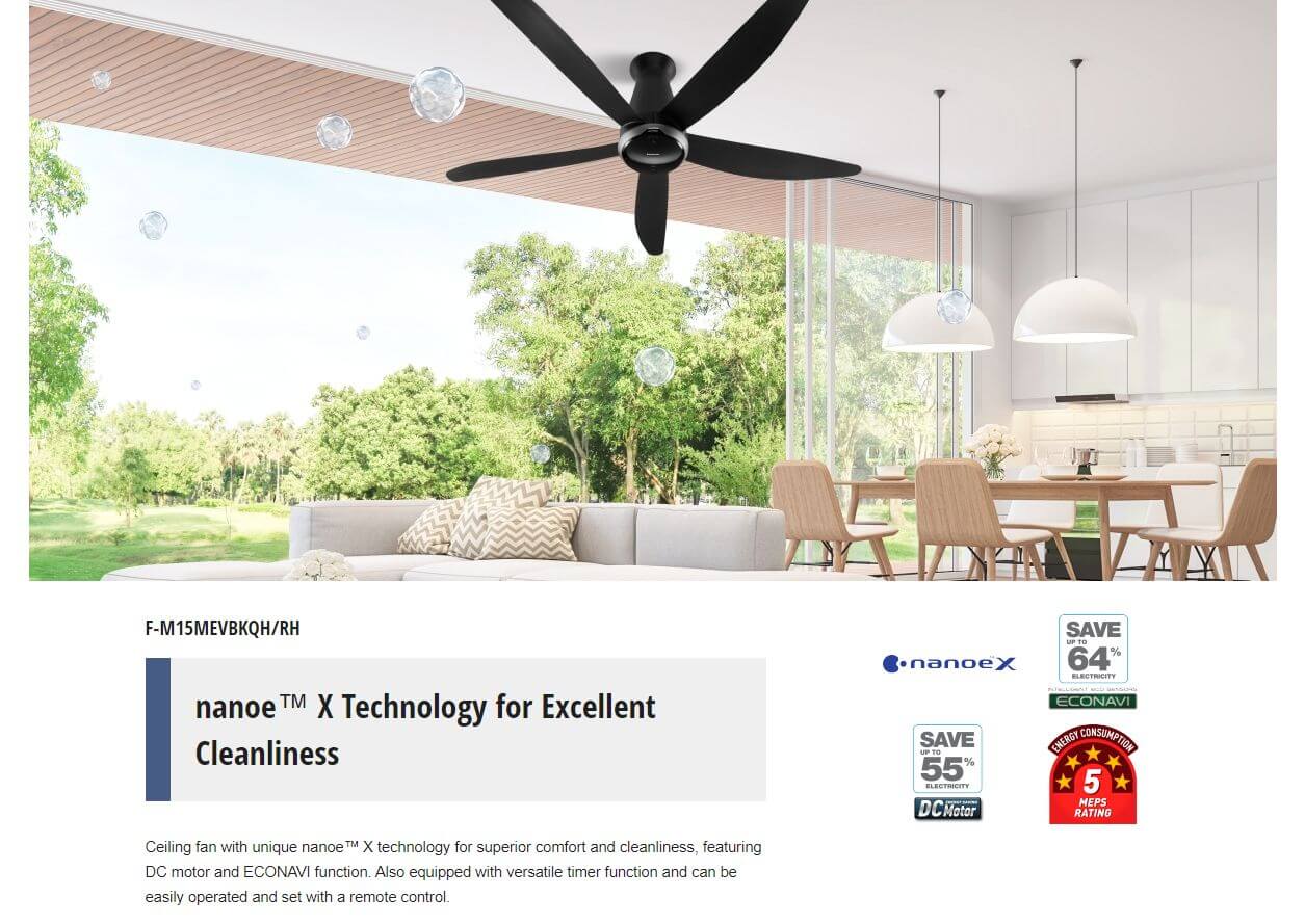 Panasonic F‑M15MEVBKRH 60″ Nanoe X Econavi 5-Blade Ceiling Fan, Long Pipe (Black)