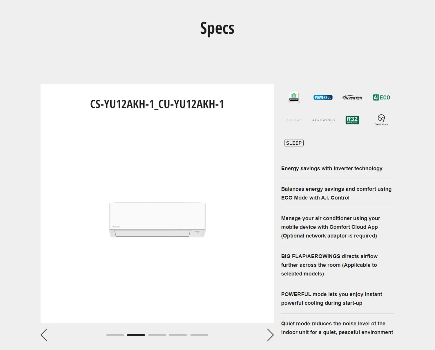 Panasonic CS-YU12AKH Air Cond 1.5HP Eco Inverter R32 CS-YU12AKH