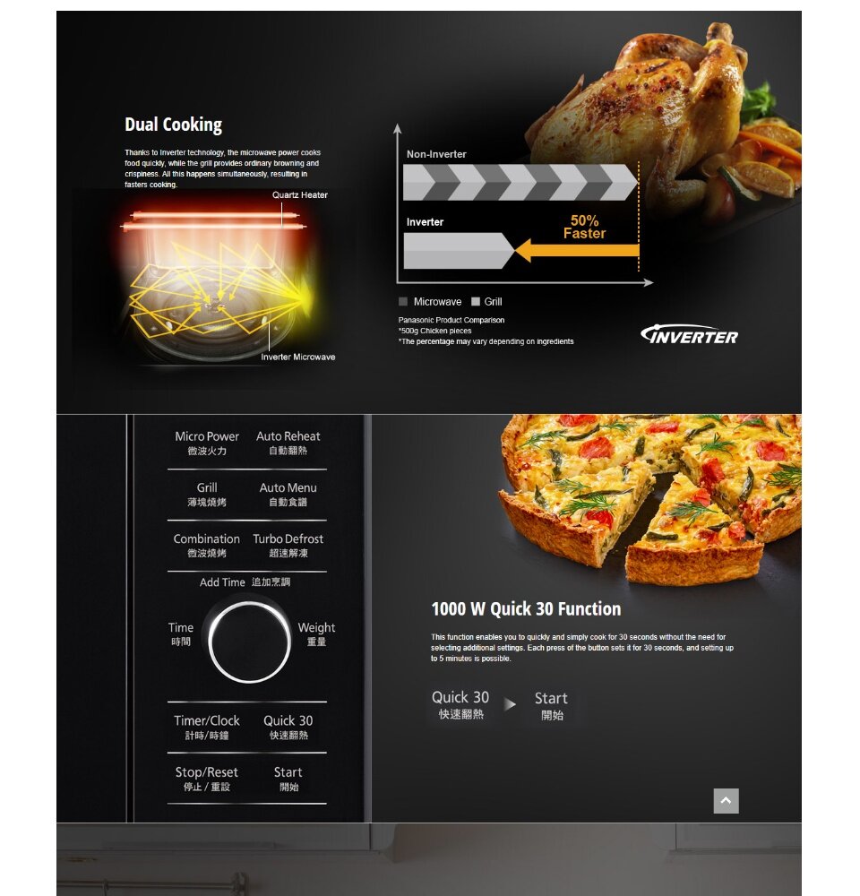 Dual Cooking: Grill & Microwave Inverter Technology: Up to 50% Faster Cooking 1000W Quick 30 Function Second Eco & Bright... Read more