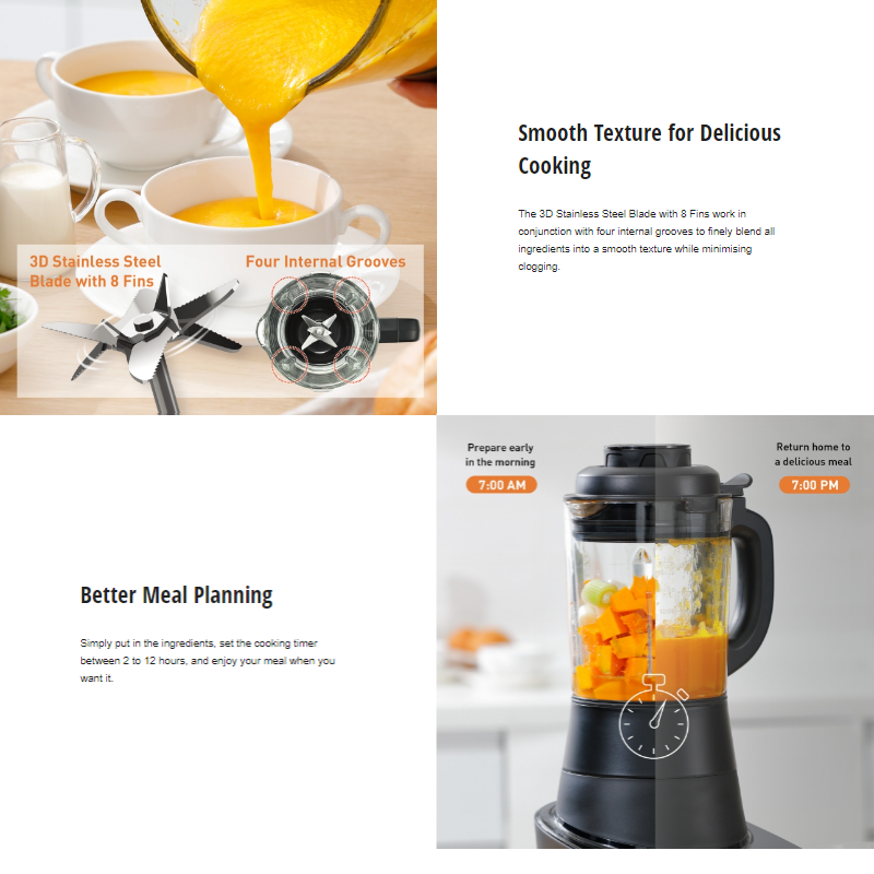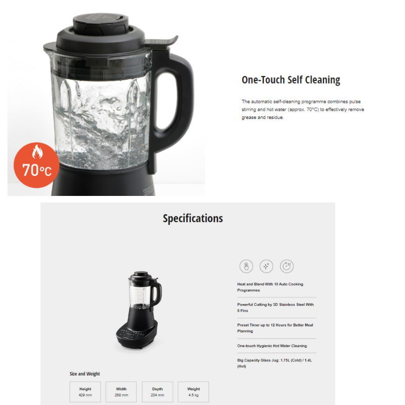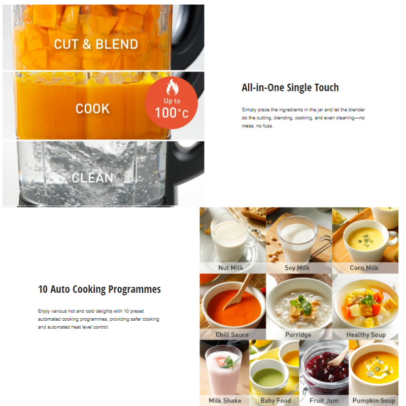 Heat and Blend With 10 Auto Cooking Programmes Powerful Cutting by 3D Stainless Steel With 8 Fins Preset Timer up... Read more