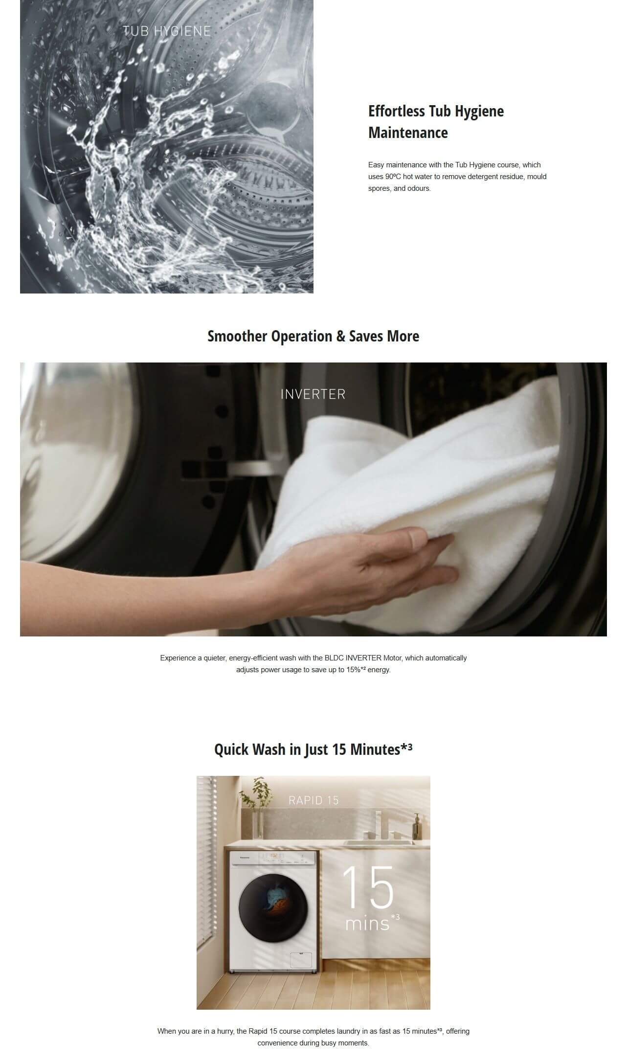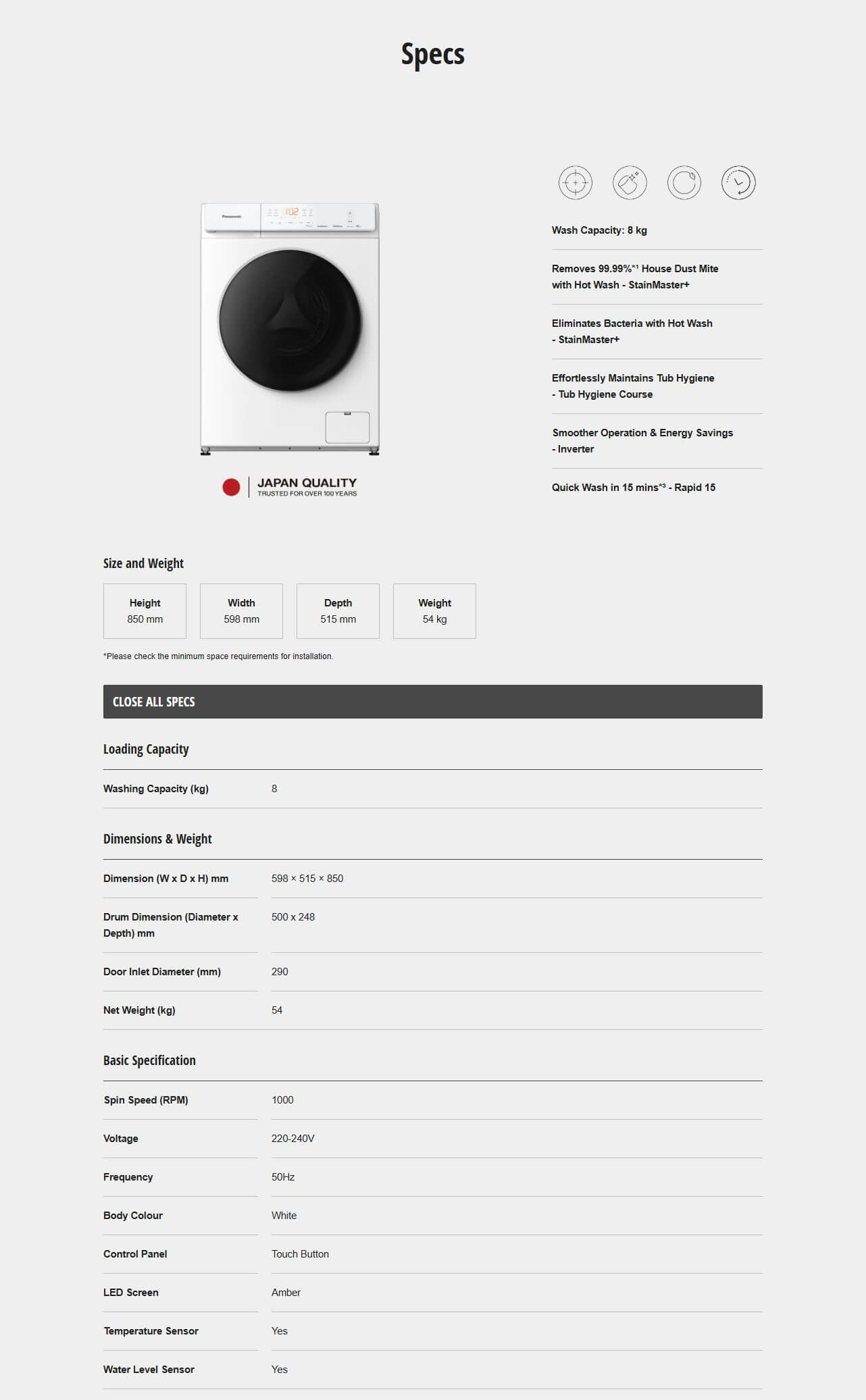 Wash Capacity: 8 kg Removes 99.99%*¹ House Dust Mitewith Hot Wash - StainMaster+ Eliminates Bacteria with Hot Wash- StainMaster+ Effortlessly... Read more