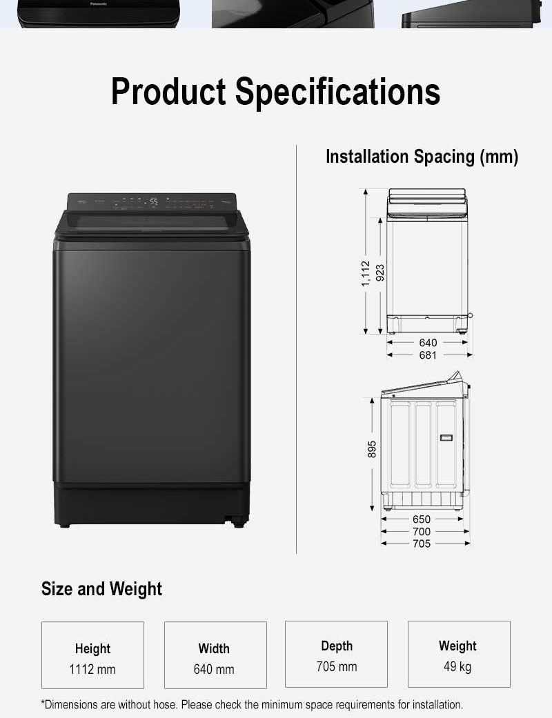 Panasonic NA‑FD180V3BT 18KG Top Load Washer ‒ Easy Hygiene & Convenient
