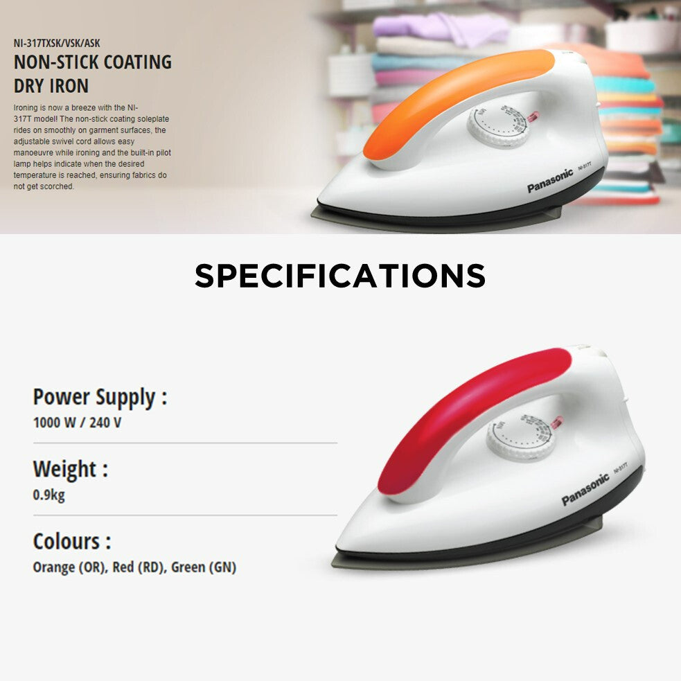 Panasonic NI-317TVSK Iron 1000W 0.9KG Non Stick Lightweight Thermal Cut Off NI-317TXSK