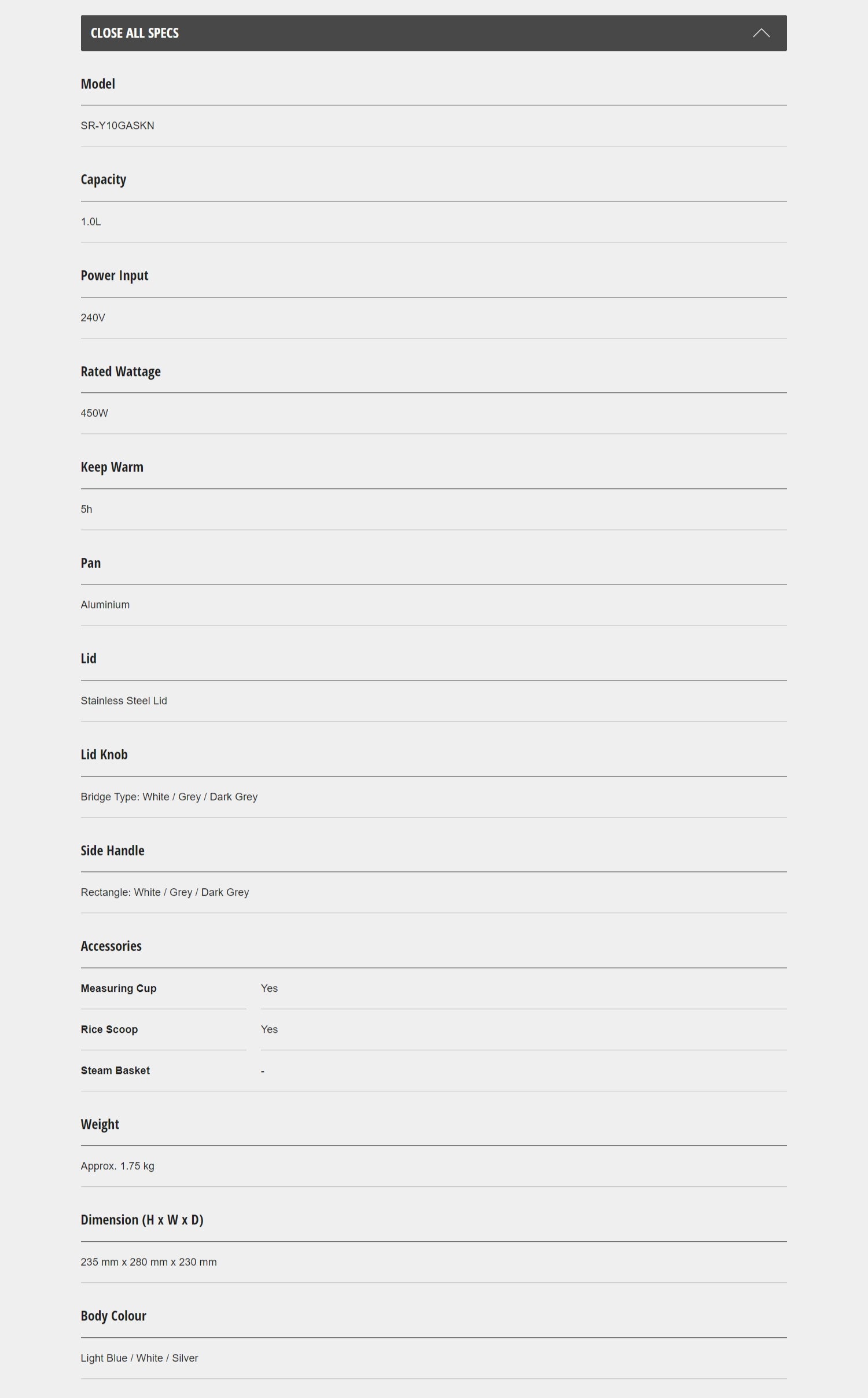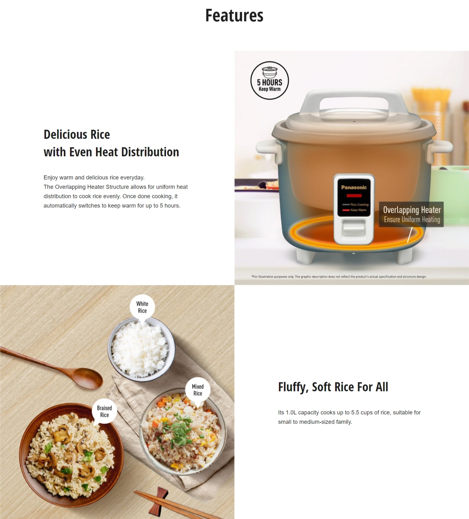 Panasonic SR-Y10GLSKN Conventional Rice Cooker 1.0L Silver SR-Y10GLSKN