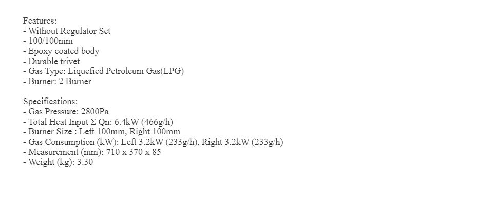 Pensonic PGC-26N 2 Burner Gas Stove PGC26N Pensonic Share WhatsApp Deel Pin it Messenger Email Sale -37%Last stock! Pensonic PGC-26N 2 Burner Gas Stove PGC26N Pensonic Share WhatsApp Deel Pin it Messenger Email Product form SKU: PEN-PGC26N RM110.00 MYR RM69.00 MYR Quantity Add to cart This item is a recurring or deferred purchase. By continuing, I agree to the cancellation policy and authorize you to charge my payment method at the prices, frequency and dates listed on this page until my order is fulfilled or I cancel, if permitted. Trusted since 1961Authorized RetailerShop with Confidence