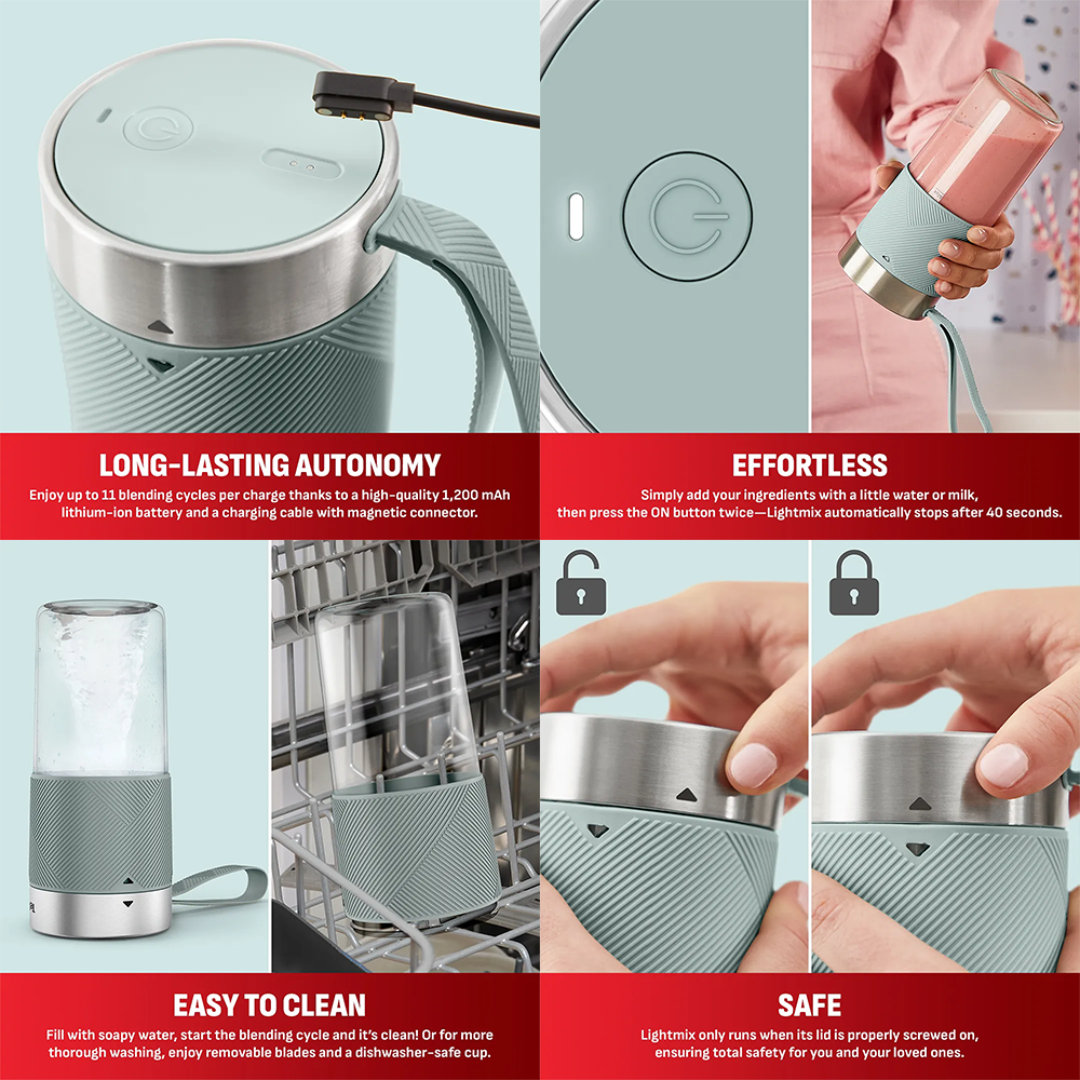 ESDiscover powerful blending in the palm of your hand with the Lightmix, the quiet portable blender. Mix and drink on the go wherever you are, be it at home, in the office, at the gym or while traveling.