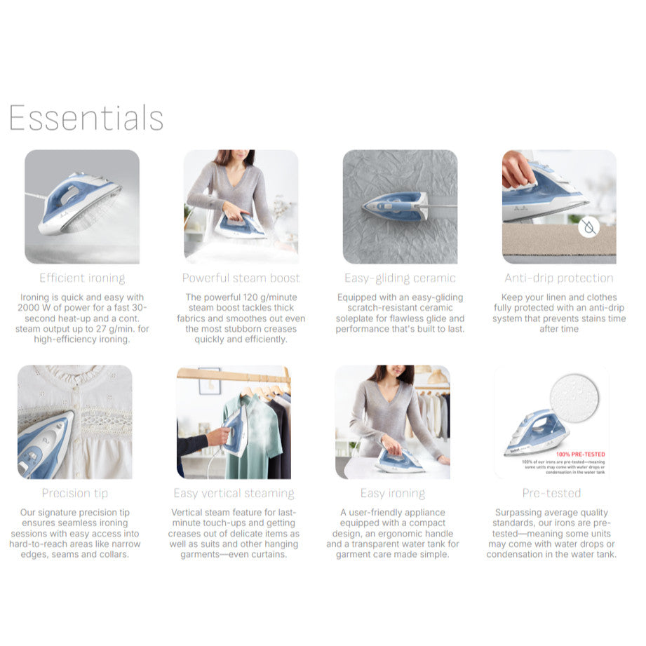 Tefal FV2C41 Steam Iron Virtuo 30 2000W, Calm Blue